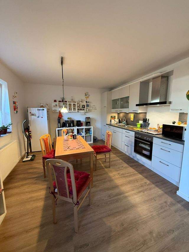 Der helle und großzügige Wohn- und Essbereich bildet das Herzstück des Hauses. Die offene Küche ist mit einer modernen Einbauküche ausgestattet und fügt sich harmonisch in das Wohnkonzept ein. Große Fensterflächen sorgen für viel Tageslicht und schaffen eine freundliche, einladende Atmosphäre.