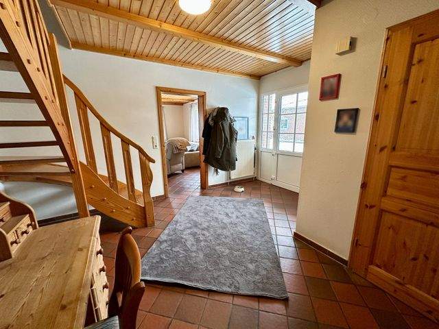 Das Wohnhaus mit einer Wohnfläche von ca. 150 m² erstreckt sich über zwei Etagen und überzeugt durch eine durchdachte Raumaufteilung. Aktuell fehlt noch ein aktualisierter Grundriss, da im Jahr 2000 im Obergeschoss noch zwei Schlafzimmer und ein zweites Bad angebaut wurden. IST-Stand: Im Erdgeschoss erwartet Sie eine separate, voll