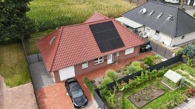 Die Lage dieses Bungalows ist besonders attraktiv, da es sich um ein ruhiges, hinteres Grundstück handelt, das von der Straße abgeschirmt ist und eine unverbaubare Aussicht über weitläufige Felder bietet. Dank Südausrichtung genießen Sie ganztägig Sonne und eine besonders hohe Wohnqualität.