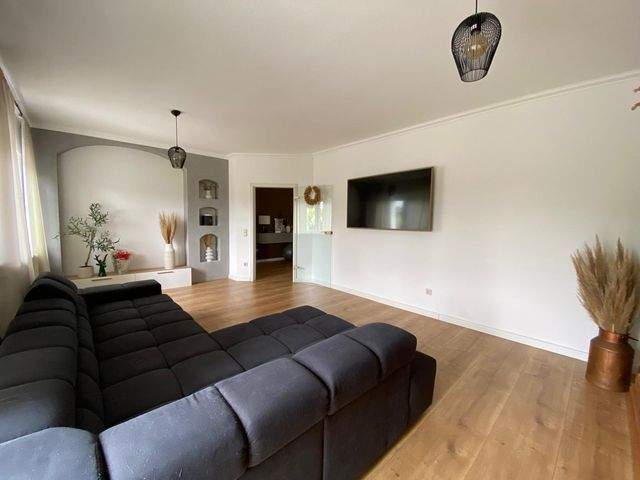 Ergänzt wird der Wohnbereich durch ein geräumiges Schlafzimmer und ein weiteres Zimmer, das sich ideal als Büro, Gäste- oder Kinderzimmer eignet. Das Badezimmer ist mit einer Badewanne und separaten Dusche ausgestattet, zusätzlich steht ein separates Gäste-WC zur Verfügung.