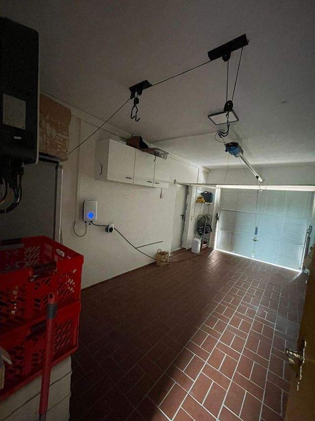 maßgefertigten Einbauschrank im Wert von ca. 9.000 Euro ausgestattet ist und einen direkten Zugang zur Garage ermöglicht. In der Garage befinden sich nicht nur eine große Werkstatt, sondern auch eine moderne Wallbox für Elektrofahrzeuge.