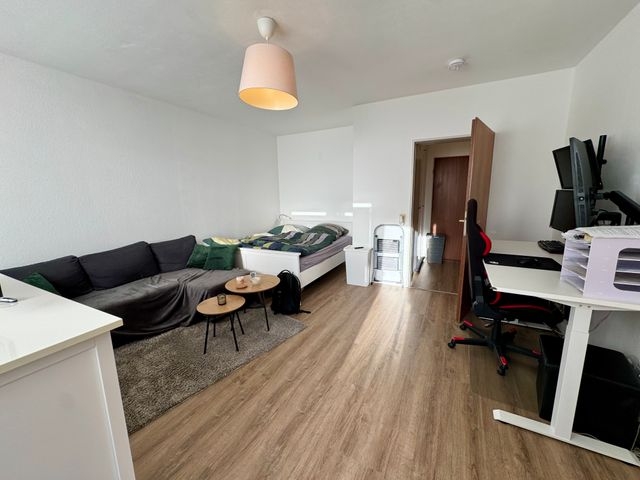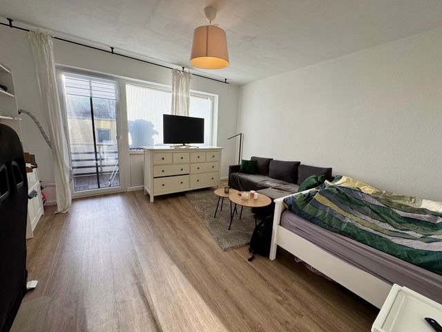 Diese gepflegte 1-Zimmer-Wohnung im Hochparterre überzeugt durch ihre praktische Aufteilung und die im vergangenen Jahr durchgeführten Modernisierungen. Der Wohn- und Schlafbereich bietet dank des großen Fensters eine angenehme Lichtatmosphäre und genügend Platz für eine komfortable Möblierung.