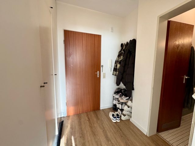 Der Flur bietet zusätzlichen Stauraum durch praktische Einbauschränke, die den verfügbaren Platz optimal ausnutzen. Ein besonderes Highlight ist der großzügige Balkon, der ebenfalls im letzten Jahr erneuert wurde und zum Entspannen im Freien einlädt.