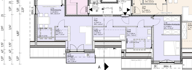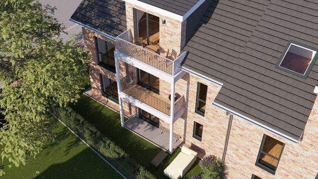 Diese attraktive 2-Zimmer-Wohnung (Wohnung 11) mit einer Wohnfläche von ca. 65,01 m² bietet modernen Wohnkomfort in nachhaltiger Bauweise. Der offene Wohn-, Koch- und Essbereich mit hochwertiger Einbauküche bildet das Herzstück der Wohnung und öffnet sich zum Balkon in West-Süd-Ausrichtung, der besonders am Nachmittag und Abend Sonne und Licht bietet. Das Schlafzimmer bietet Platz für ein großes Bett und ausreichend Stauraum.
