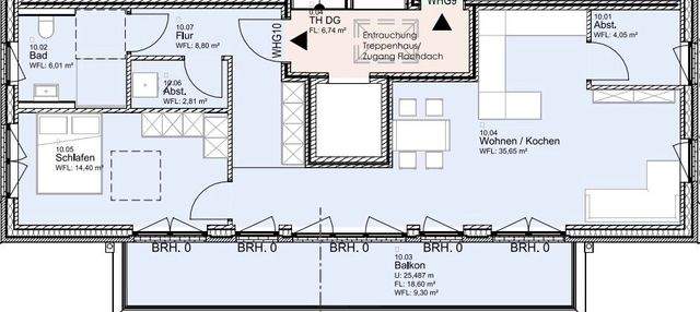 Von hier aus gelangen Sie direkt auf die großzügige Dachterrasse mit Süd-Ost-Ausrichtung, die ideale Voraussetzungen für entspannte Stunden im Freien bietet.